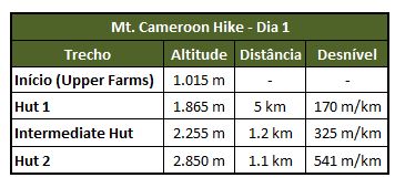 Dia 1 - Buea (1015 m) até Hut 2 (2850 m)